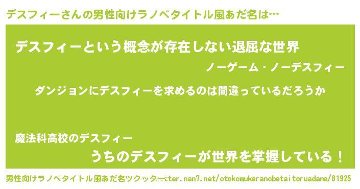 | 女子向けラノベタイトル風あだ名 | 『デスフィーは平凡を望む』 |