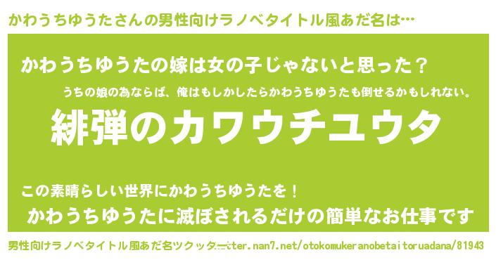 | 女子向けラノベタイトル風あだ名 | 『シンデレラかわうちゆうた家の靴箱館』 |