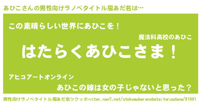 | 意味不明あだ名 | 『住所不定無職あひこ(59歳)』『自称あひこ』 |