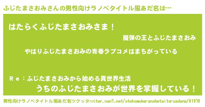 | 女子向けラノベタイトル風あだ名 | 『ふじたまさおみの雑貨屋さん』 |