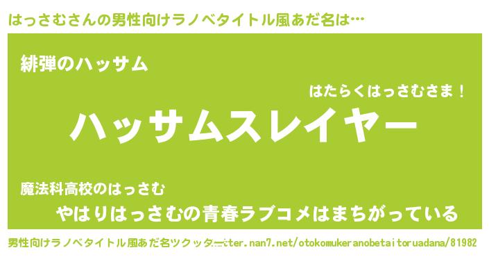 | ヒーロー風カッコイイあだ名 | 『ウルトラはっさむマン』『ネオハッサム』 |