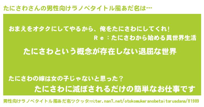 | ヘコむあだ名 | 『たにさわ(苦笑)』『たにを』 |