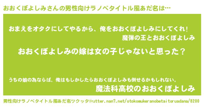 | 女子向けラノベタイトル風あだ名 | 『おおくぼよしみ様がみてる』 |
