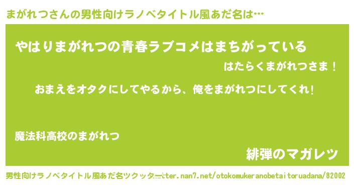 | ヒーロー風カッコイイあだ名 | 『友情の使者まがれつ』『黄金騎士マガ』 |
