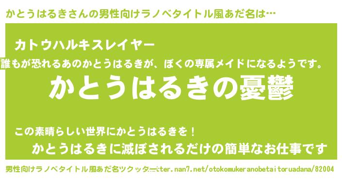 | 女子向けラノベタイトル風あだ名 | 『(仮)かとうはるきのやんごとなき事情』 |