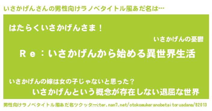 | 意味不明あだ名 | 『自称いさかげん』『永久保存いさかげん』 |