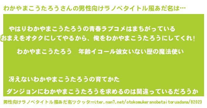 | 女子向けラノベタイトル風あだ名 | 『わかやまこうたろうの玉の輿計画!』 |