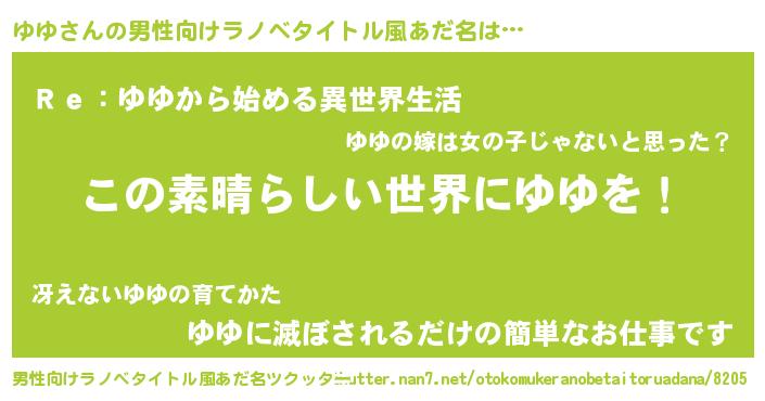 | 胡散臭い通販商品みたいなあだ名 | 『あなたにだけ特別に提供する世界で10本だけ現存している希少なブランデー…その名も「ゆゆ」』 |