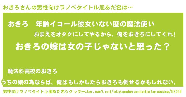 | 女子向けラノベタイトル風あだ名 | 『おきろ様がみてる』『おきろ伯爵の花嫁』 |