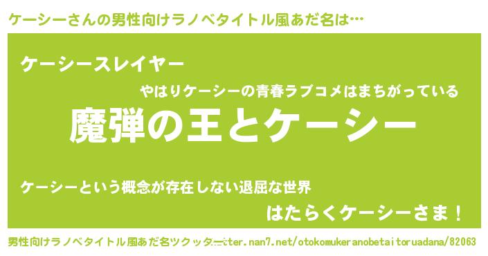 | 意味不明あだ名 | 『住所不定無職ケーシー(74歳)』 |