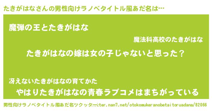 | 女子向けラノベタイトル風あだ名 | 『たきがはな様がみてる』 |