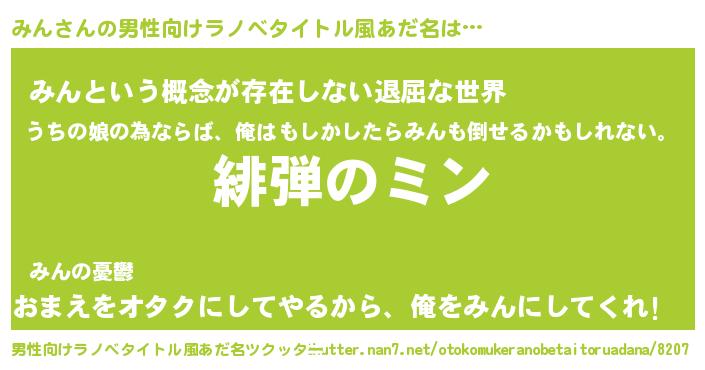 | 胡散臭い通販商品みたいなあだ名 | 『絶対に幸福をもたらす招き猫…その名も「みん」』 |