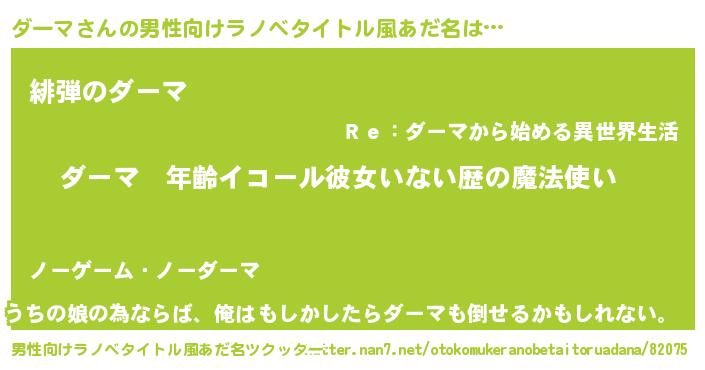 | 女子向けラノベタイトル風あだ名 | 『ダーマの玉の輿計画!』『闇のダーマ』 |