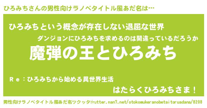 | 女子向けラノベタイトル風あだ名 | 『ひろみちが死なない童話 林檎のひろみちの診療簿』 |