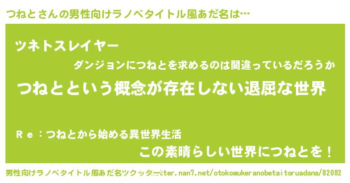 | 胡散臭い通販商品みたいなあだ名 | 『絶対に幸福をもたらす健康食品…その名も「つねと」』 |