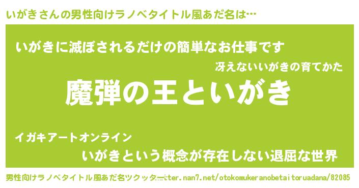 | 女子向けラノベタイトル風あだ名 | 『いがきが死なない童話 林檎のいがきの診療簿』 |