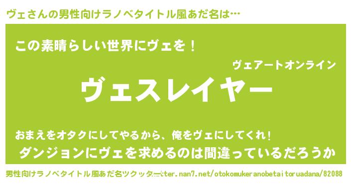 | ヘコむあだ名 | 『ヴェっ子』『ヴェにゅー』『牛乳』 |