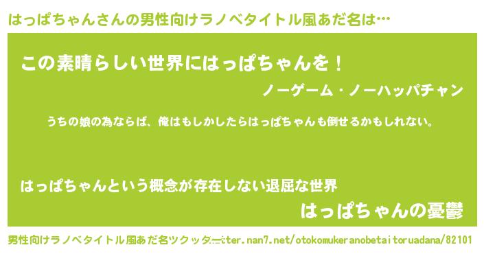 | ファンタジー風あだ名 | 『エターナルハッパチャンー』 |