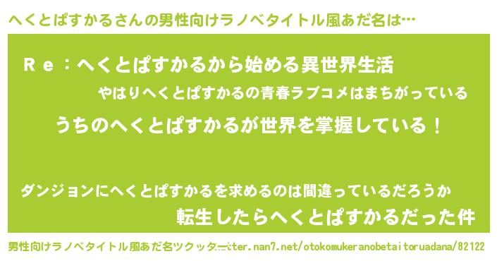 | 胡散臭い通販商品みたいなあだ名 | 『芸能人もオススメする高麗人参…その名も「へくとぱすかる」』 |