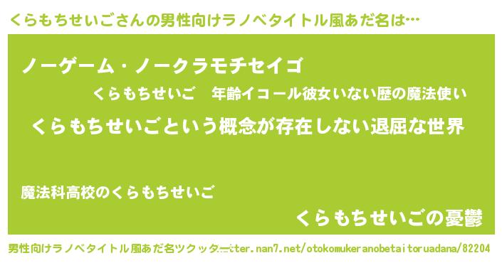 | ヒーロー風カッコイイあだ名 | 『ネオクラモチセイゴ』『仮面クラダー』 |