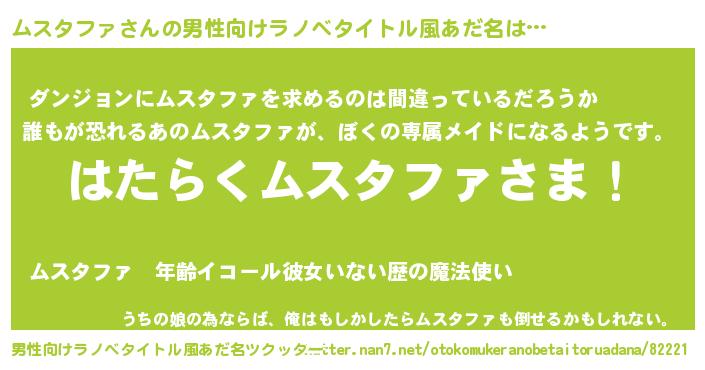 | 胡散臭い通販商品みたいなあだ名 | 『信頼と実績のネックレス…その名も「ムスタファ」』 |