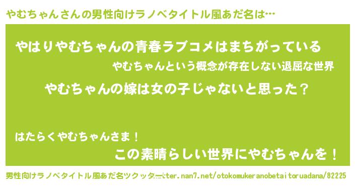| 女子向けラノベタイトル風あだ名 | 『やむちゃん様がみてる』 |