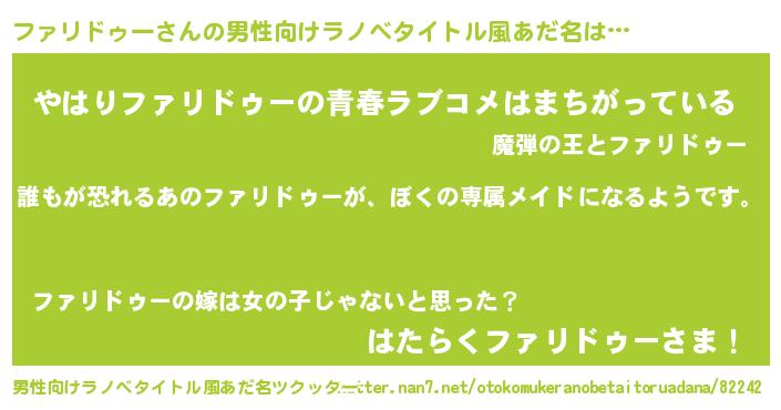 | 女子向けラノベタイトル風あだ名 | 『異世界でカフェファリドゥーを開店しました。』 |