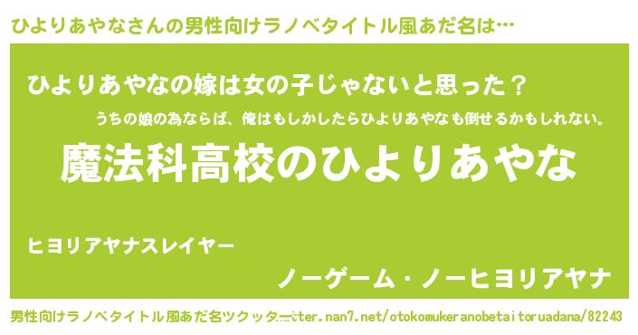 | 女子向けラノベタイトル風あだ名 | 『ひよりあやななんてお断りですっ。』 |