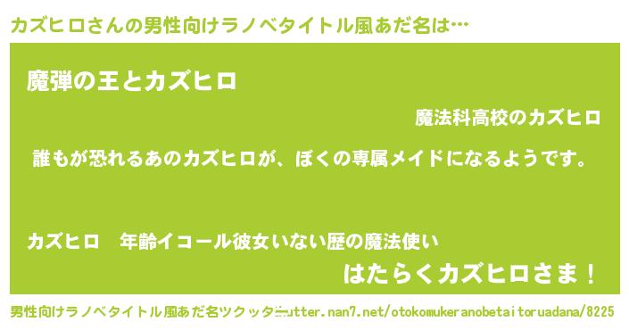 | 女子向けラノベタイトル風あだ名 | 『カズヒロの契約王妃』 |