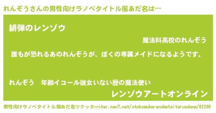 | 胡散臭い通販商品みたいなあだ名 | 『来世でも幸せになれる水素水…その名も「れんぞう」』 |