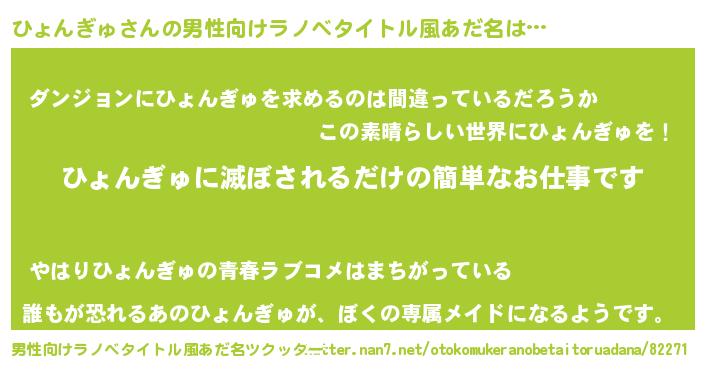 | ヘコむあだ名 | 『ひょっぺ』『ひょんぎゅ(遠い目)』 |