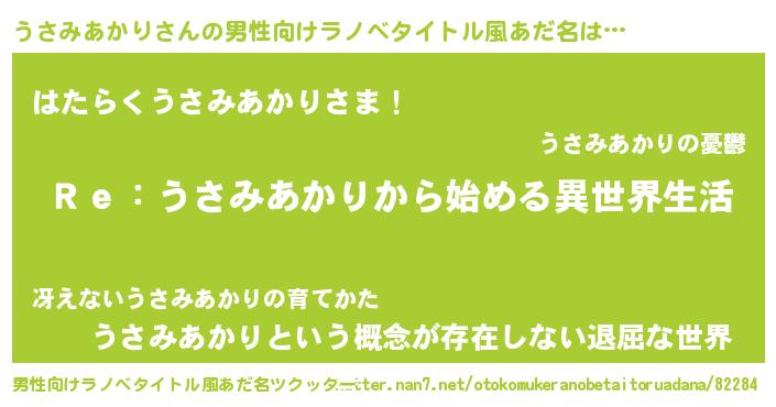 | ヘコむあだ名 | 『うさみあかり(小並感)』『うさにー』 |