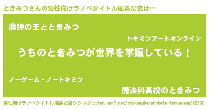 | 胡散臭い通販商品みたいなあだ名 | 『あなたにだけ特別に提供する世界で10本だけ現存している希少なブランデー…その名も「ときみつ」』 |
