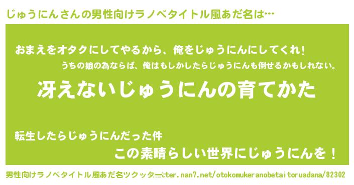 | 胡散臭い通販商品みたいなあだ名 | 『お金では代えられない隕石のかけら…その名も「じゅうにん」』 |