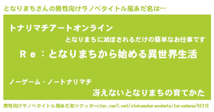| 胡散臭い通販商品みたいなあだ名 | 『芸能人もオススメする高麗人参…その名も「となりまち」』 |