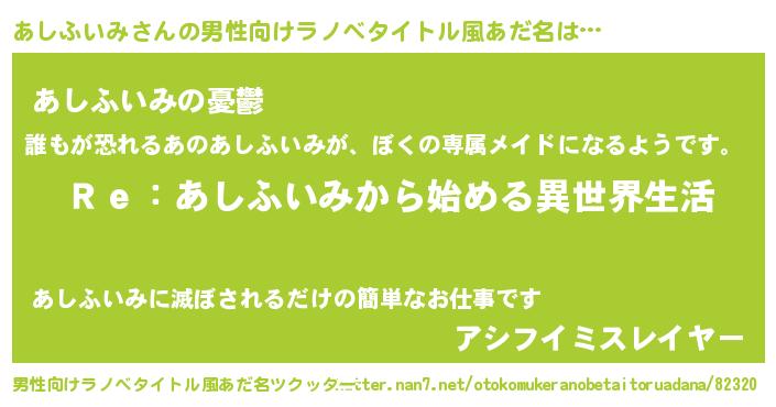 | 意味不明あだ名 | 『自称あしふいみ』『ペロリンあしふいみ』 |