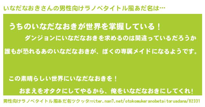 | 女子向けラノベタイトル風あだ名 | 『異世界でカフェいなだなおきを開店しました。』 |