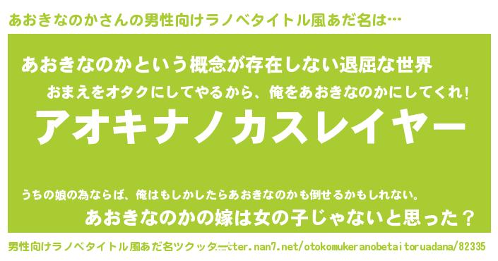 | 胡散臭い通販商品みたいなあだ名 | 『絶対に幸福をもたらす健康食品…その名も「あおきなのか」』 |