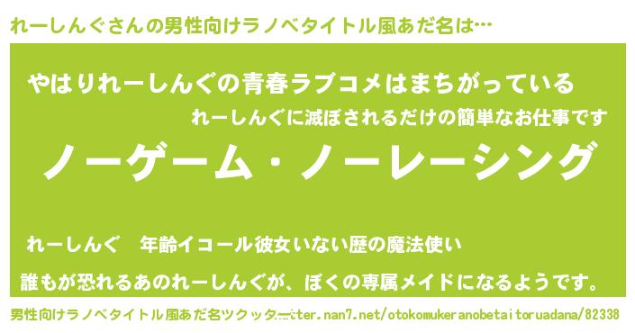 | 女子向けラノベタイトル風あだ名 | 『死神れーしんぐの再婚』 |