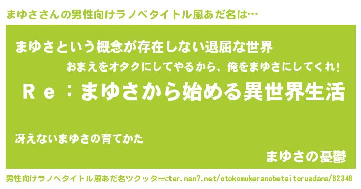 | 女子向けラノベタイトル風あだ名 | 『まゆさストレイドッグス』 |