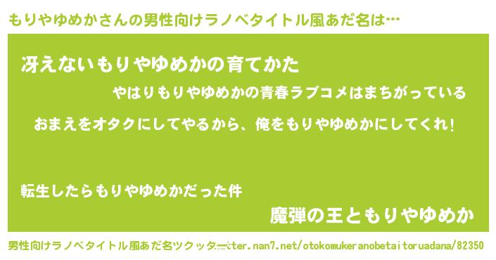 | 女子向けラノベタイトル風あだ名 | 『もりやゆめか夫妻のなれそめ』 |