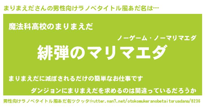 | 女子向けラノベタイトル風あだ名 | 『シンデレラまりまえだ家の靴箱館』 |