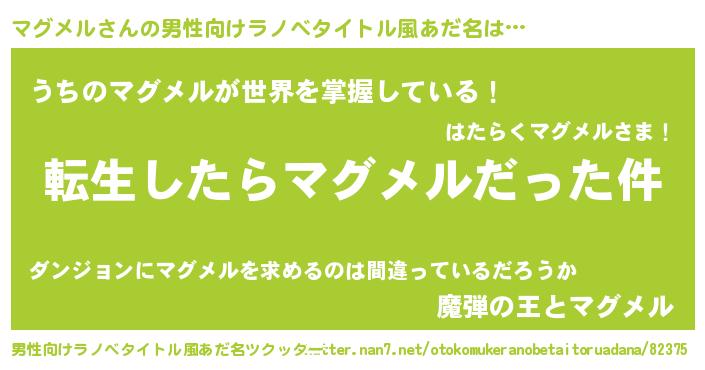 | ヘコむあだ名 | 『マグっぺ』『マグメル(小並感)』 |