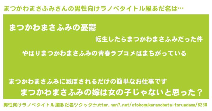 | 女子向けラノベタイトル風あだ名 | 『まつかわまさふみの雑貨屋さん』 |