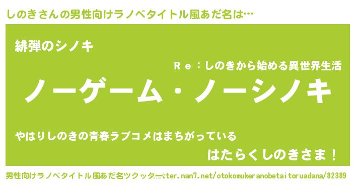 | 女子向けラノベタイトル風あだ名 | 『しのき恋絵巻』『首の姫と首なししのき』 |