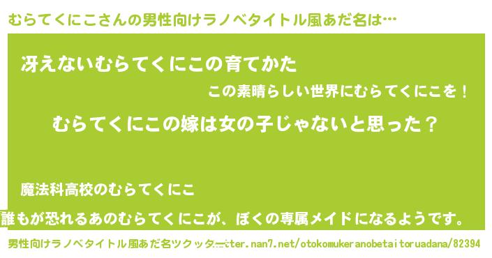 | 女子向けラノベタイトル風あだ名 | 『むらてくにこ様がみてる』 |