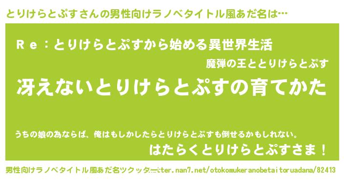 | 意味不明あだ名 | 『自称とりけらとぷす』 |