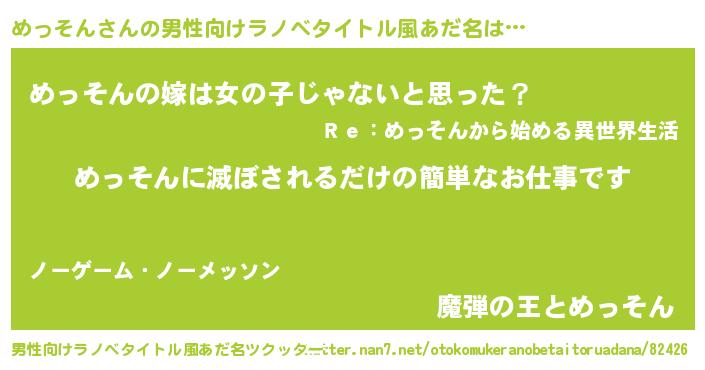 | 胡散臭い通販商品みたいなあだ名 | 『全米が絶賛したサプリメント…その名も「めっそん」』 |
