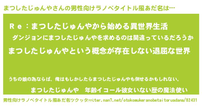 | 胡散臭い通販商品みたいなあだ名 | 『絶対に幸福をもたらす水素水…その名も「まつしたじゅんや」』 |