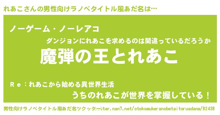| 女子向けラノベタイトル風あだ名 | 『れあこが死なない童話 林檎のれあこの診療簿』 |